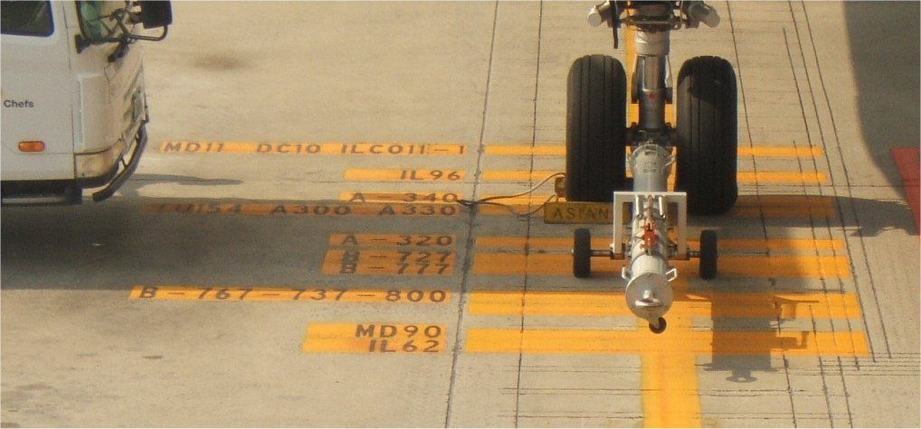 基本となる端っこの停止ラインまでは基準通りですが、機種ごとのラインや機体名の表記は