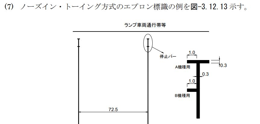 「図-3.12.13 ノーズイン・トーイング方式のエプロン標識の例」
