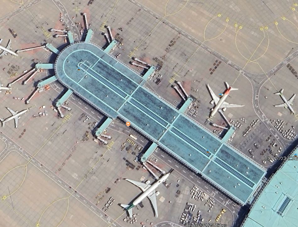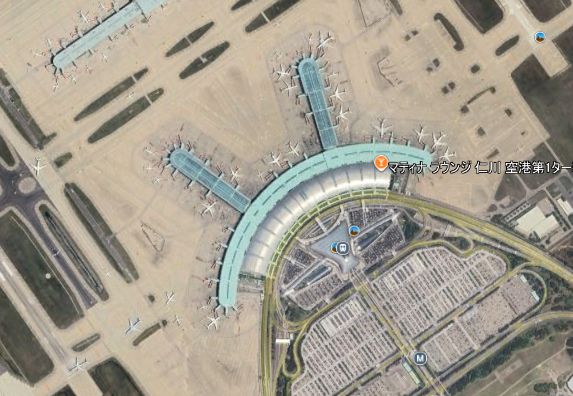 インチョン空港をグーグルアースで覗いて見ました。 横棒の停止線が減った感じですね。